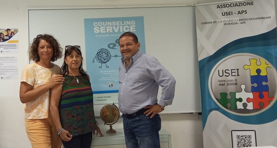 Oggi, presso la sede operativa dell’Unione di Solidarietร  degli Ecuadoriani in Italia (USEI-APS) a Savona, รจ stato ufficializzato l’accordo tra l’associazione ยซA Cielo Apertoยป e la USEI-APS per la realizzazione del progetto ยซAscoltaTe: Un Viaggio Interiore Accompagnatoยป.