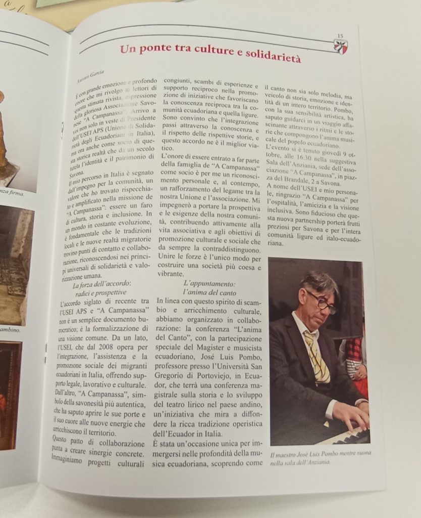 LโUSEI-APS (Unione di Solidarietร degli Ecuadoriani in Italia – APS), con il presidente Antonio Garcia, รจ stata orgogliosa di partecipare a questo momento insieme alla storica associazione ยซA Campanassaยป.
