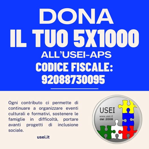 Anche quest’anno, con la vostra dichiarazione dei redditi, avete un’opportunitร preziosa per sostenere direttamente le attivitร di USEI APS senza alcun costo aggiuntivo per voi.