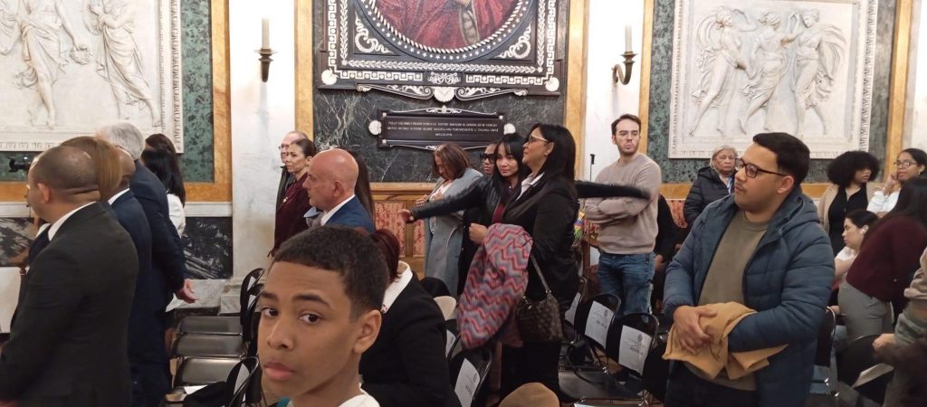 Successivamente, i dirigenti di USEI-APS, invitati dal Consolato Generale della Repubblica Dominicana a Genova, si sono recati al Salone di Rappresentanza di Palazzo Doria Tursi, dove hanno assistito alla Conferenza Magistrale ยซUno sguardo storico e geopolitico sulla Repubblica Dominicanaยป, tenuta dal Dott. Ivan Ernesto Gatรณn Rosa, ambasciatore del Ministero degli Affari Esteri della Repubblica Dominicana. Durante l’incontro รจ stata anche presentata al pubblico la rivista a fumetti ยป Las Maravillas de la primada de Amรฉrica 2″.
