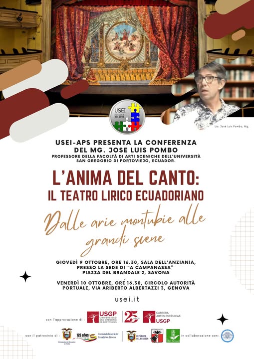 L’USEI โ€“ APS (Unione di Solidarietร  degli Ecuadoriani in Italia – APS) รจ lieta di annunciare la realizzazione dell’evento culturale ยซL’anima del canto: il teatro lirico ecuadorianoยป, un’iniziativa che mira a diffondere la ricca tradizione operistica dell’Ecuador in Italia.