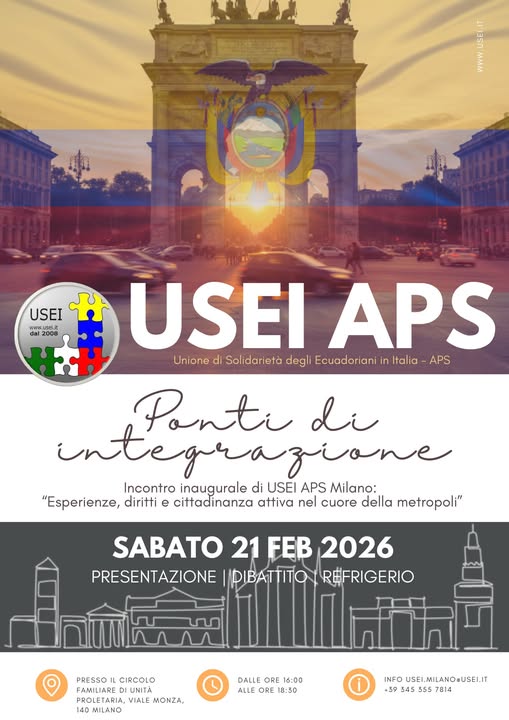 USEI – APS (Unione di Solidarietร degli Ecuadoriani in Italia – APS) รจ pronta a dare il via alle sue attivitร a Milano e vogliamo festeggiare questo inizio con te!