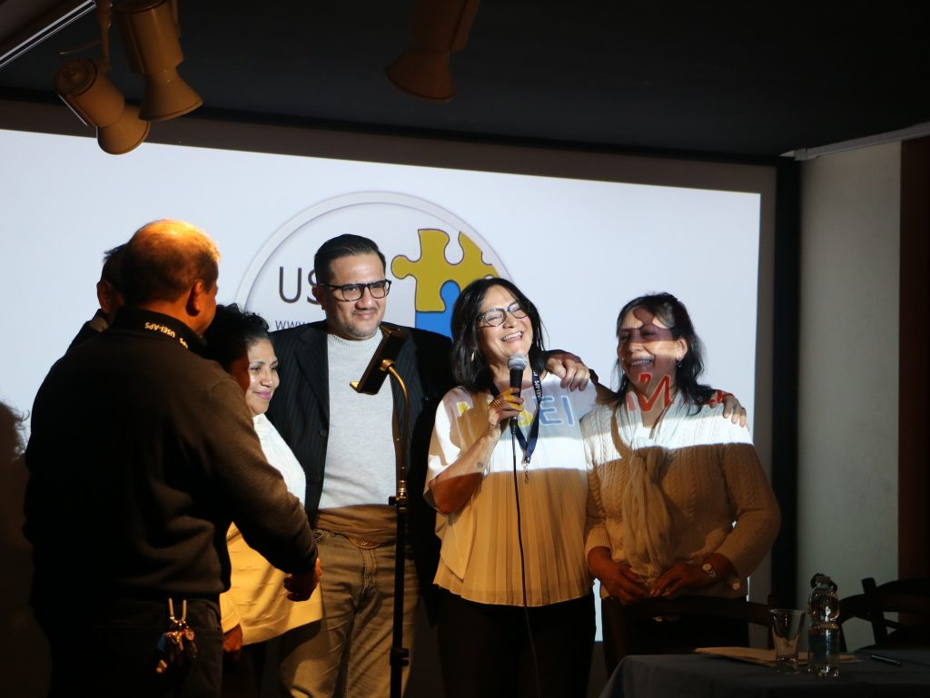 Il momento culminante è stato il taglio del nastro, che ha visto salire sul palco la squadra operativa guidata da Mariana Garcia e composta da Doris García, Noemi Salazar, Darwin Romero e Mauricio Salazar. All’atto hanno partecipato anche le delegazioni USEI di Genova e Savona, a testimonianza della compattezza dell’organizzazione.